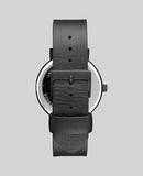 A simple take on the classic time-teller. Featuring a sandblasted matte black coated stainless steel case, black face with minimalist white markers and premium black leather band. The Horse logo lettering on dial and at buckle closure.