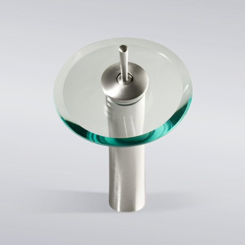 Brand new Euro modern contemporary brushed nickel waterfall faucet vessel filler. The water flows off the glass tray like a waterfall. Premium quality.