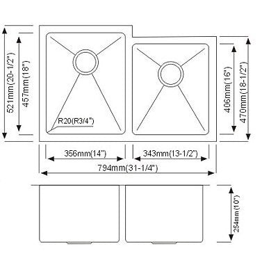 Dax-3120-B Modern Undermount Double Bowl Kitchen Sink