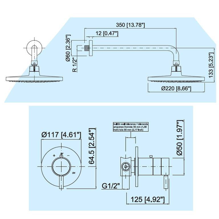 Mz Minima Modern Bathroom Thermostatic Shower Set - Chrome Or Brushed Nickel